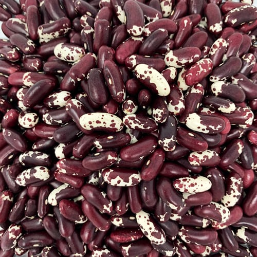 Dried Jacob’s Cattle Beans are plump white kidney-shaped beans with deep maroon splashes covering nearly all of the white bean. This old heirloom variety holds its shape well after cooking and possesses a rich aroma with full, nutty flavor and dense, meaty texture.  These beans stand up well to plenty of seasoning and are most suited for soups and casseroles. Jacob’s Cattle Beans are an old variety native to North America, said to be cultivated by the Passamaquoddy Indians during the 17th century.